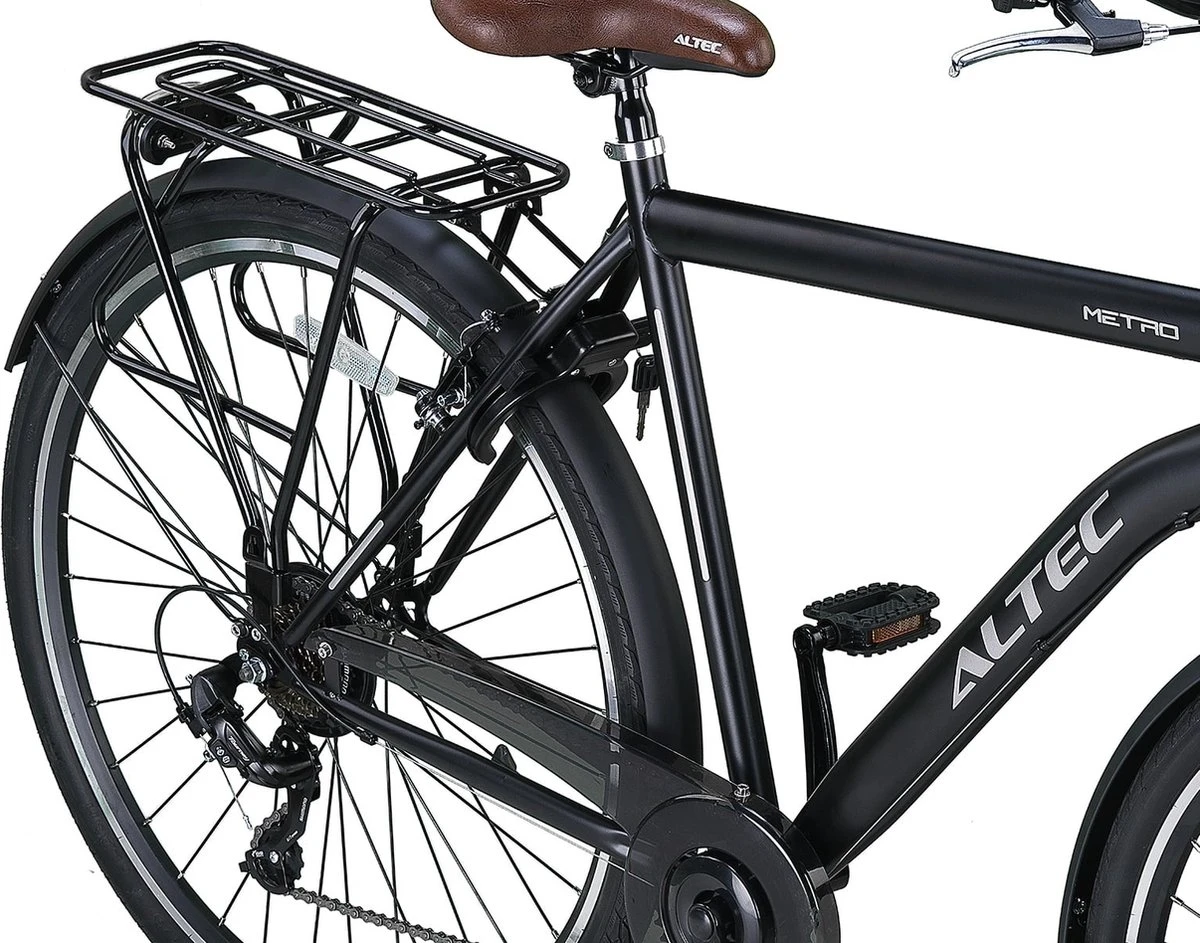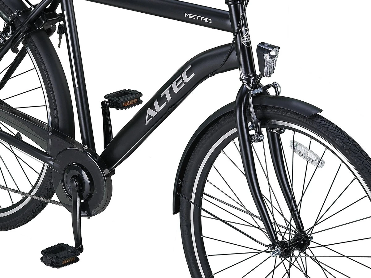 Altec Metro Herenfiets 28 inch 56cm 7vOnze Altec fietsen zijn nog niet afgemonteerd en worden in een doos verstuurd. Zie de handleiding onderaan voor instructies. Altec Metro Herenfiets 28 inch 56cm 7v De Altec Metro is een betaalbare stadsfiets met maar liefst 7 Shimano versnellingen. Een stadsfiets met dit aantal versnellingen tegen deze prijs vind je niet snel! Altec Metro Herenfiets 28 inch 56cm 7v stadsfiets beschikt over een aantal fijne eigenschappen. De prijs is wellicht het eerste wat je opvalt en dat is zeker een goed aspect van deze fiets. Het design van deze fiets is bovendien erg modern en komt dan ook goed tot zijn recht in een stedelijke omgeving. Zwart is sowieso een kleur die erg mooi staat. Het materiaal van het frame is staal. Hierdoor is de fiets wel wat zwaarder, maar aan de andere kant ook erg stevig. Let wel op, oxidatie is bij staal niet uit te sluiten. Daarom kunnen we je als tip meegeven deze in te spuiten met blanke lak.Je kunt de fiets onder controle houden door middel van de veilige V-brake handremmen. Het beste aan deze elegante stadsfiets zijn toch wel de 7 versnellingen. Hiermee zijn de snelheid en trapzwaarte van jouw fiets altijd op het niveau dat perfect is voor jou. De velgen bestaan, in tegenstelling tot het frame uit aluminium. Lichtgewicht en roestvrij dus! Voor de fanatieke fietser die ook sā nachts gebruikt wilt maken van de Altec Metro, zit er op zowel de voor als achterkant LED verlichting. De Altec Metro is een leuke fiets voor een scherpe prijs. De v-brake en derailleur moeten nauwkeurig en met enige regelmaat afgesteld worden voor een optimale prestatie. Dit is een leuke fiets voor af en toe waar je niet een hele grote verwachting bij moet hebben. Voor dagelijks en intensief gebruik kunnen we andere alternatieven aanbieden. Zoals hierboven weergegeven. De Altec Metro kan je in doos of rijklaar aanschaffen. Ons advies is om een fiets altijd rijklaar aan te schaffen. Dit komt omdat het afstellen van de derailleur versnellingen lastig kan zijn. Zo weet je zeker weet dat een fiets door een vakkundige monteur is afgemonteerd. Een veilige en goede montage is niet alleen belangrijk voor goede prestaties van de fiets, maar ook voor de slijtagegevoeligheid van bepaalde onderdelen. Meer informatie over de Altec metro (https://www.superfietsen.nl/service/informatie-over-de-altec-metro/) Shimano derailleur 7: Shimano derailleur 7 biedt een zeer ruime keuze in versnellingen
