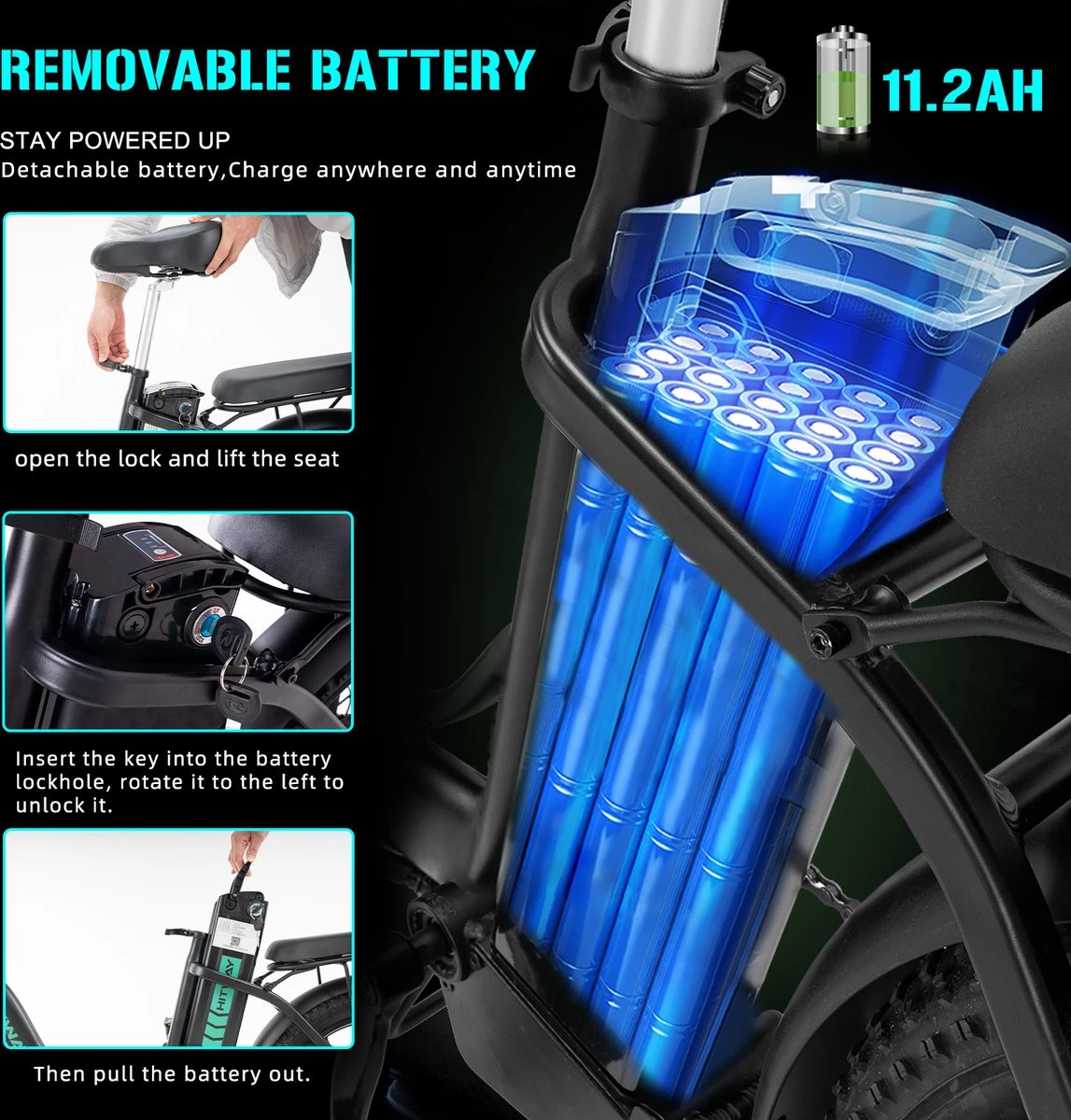 Hitway BK6 Elektrische Fiets | Opvouwbare E-bike | 20 Inch Fat Tire | 350W Motor | 10Ah | Zwart/Groen