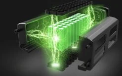 – 10Ah / 48V Li-ionbatterij (inbegrepen in het product) voor max. 40 km kilometers met puur elektrische modus en 70 km kilometers met bromfietsmodus.